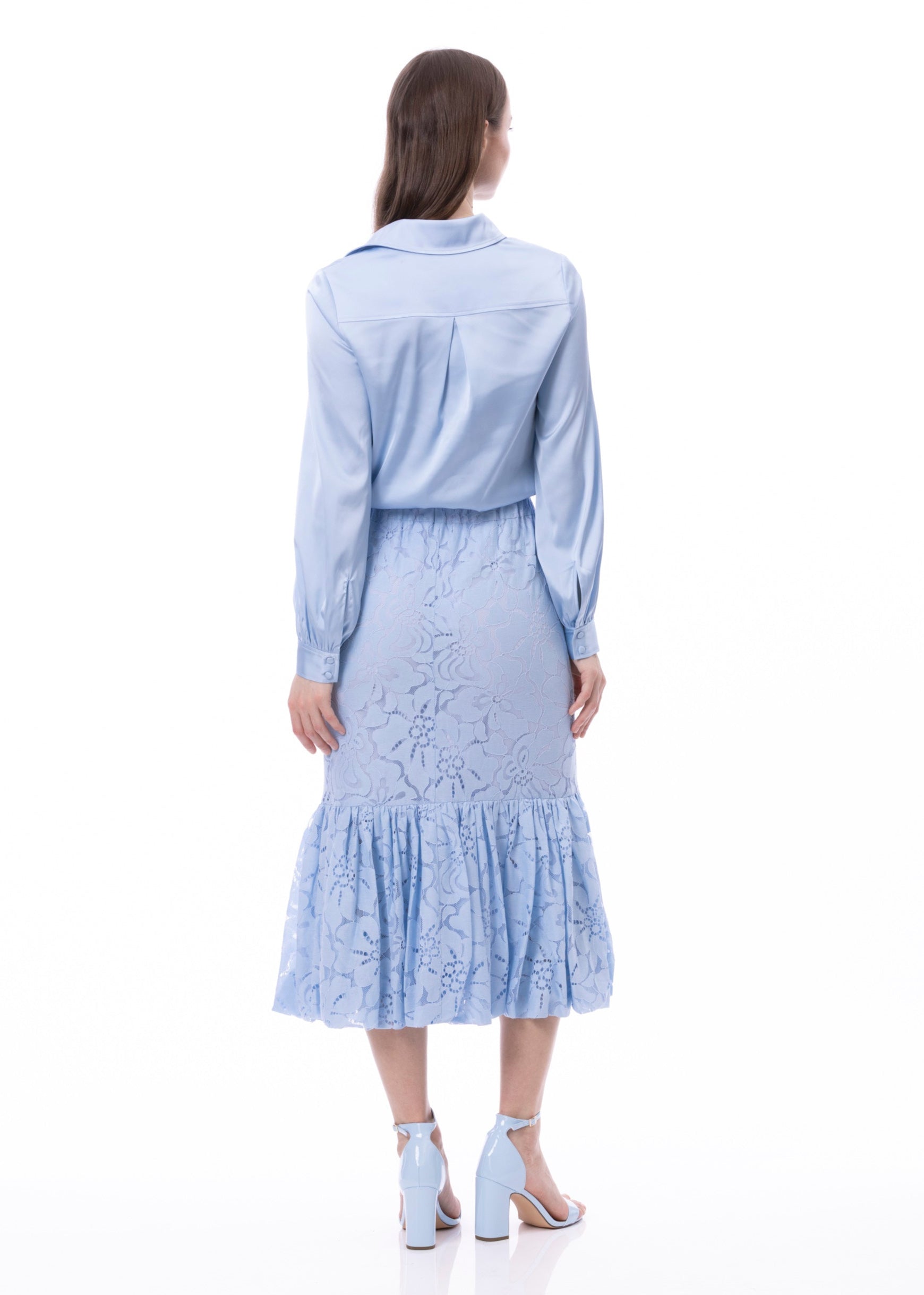 Balloon Flounce Elasticized Waist Sheath Lace Skirt With Pockets (Solid)